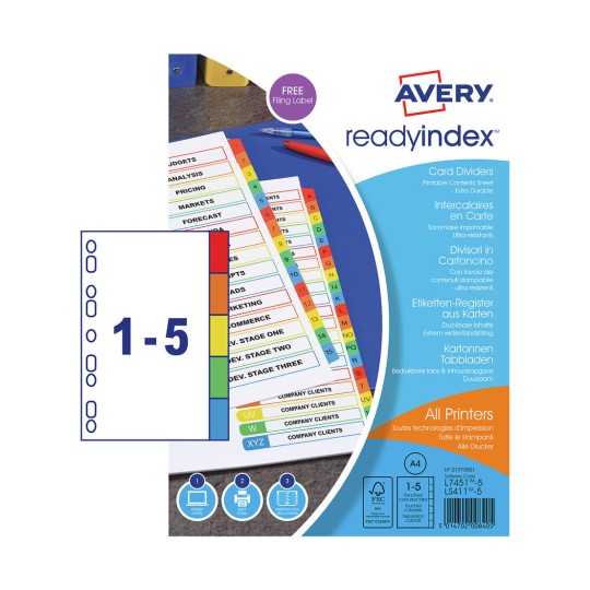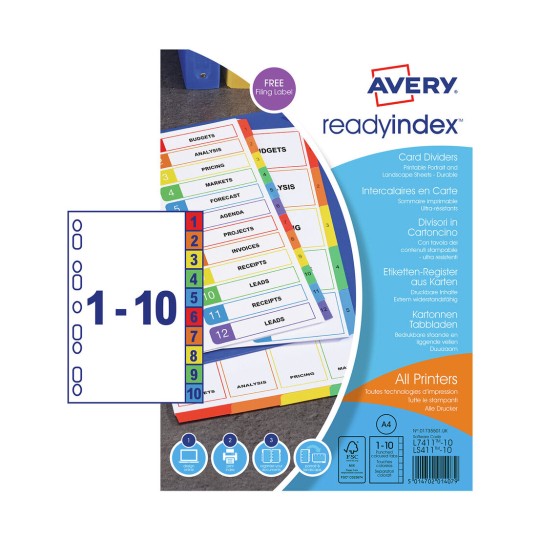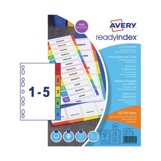 Available in a number of index sections from 1-5 to 1-31, A-Z, Jan-Dec and 5 and 10 part; there’s an ideal divider set to help you organise your files.