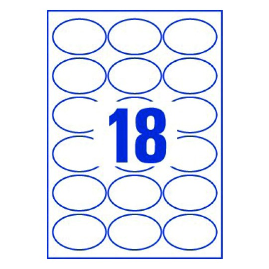 Word Template for Avery L7791 Glossy Oval Labels, 63.5 x 42.33 mm, 18 per sheet
